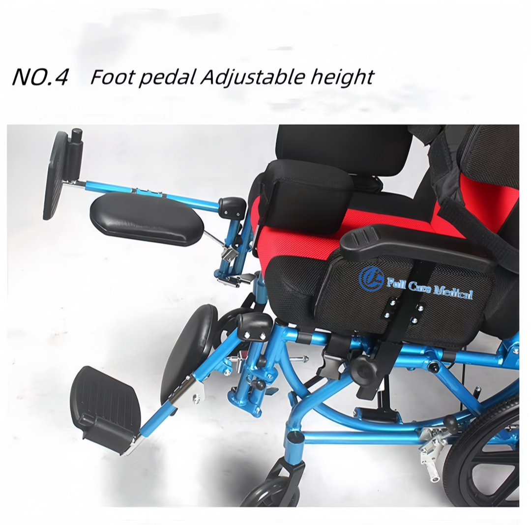 Aluminum Light Weight Transportation CP Wheelchair FC958L-A is an durable and fold-able wheelchair with tilt and recline .With its aluminum material frame and compact design the transportation CP wheelchair can be easily carried and stored in your car boot making it ideal for short trips and for taking on holiday.