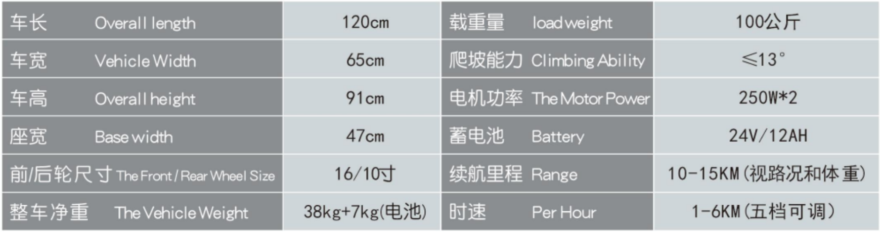 Product functions: steel function electric wheelchair, stop controller, brush motor,lead-acid battery, 24V500W, 24V12A, top speed of 6 km/ h, front wheel 16 inch, rear wheel 10 inch, Frame: High-strength carbon steel, Frame color: silver spray. Handrails: PU thickened handrails, handrails can be turned back; Seat cushions: flame retardant double-decker seat cushions (red, blue); Foot pedal: removable, adjustable high and low. Net weight: 44KG. Safety load: 100KG. Theoretical itinerary: 20KM. Climbing ability: 6 degrees. Dimensions: 118 x 63 x 94 CM