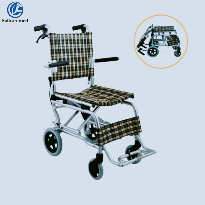 Its aluminum material frame and compact design the transit wheelchair can be easily carried and stored in your car boot making it ideal for short trips and for taking on holiday. With the weight of only 10.4kg, the transportation wheelchair can be folded down to allow it to fit into most car boots without difficulty. The transit wheelchair is with double cross bar, make it more stable even on rough road.