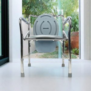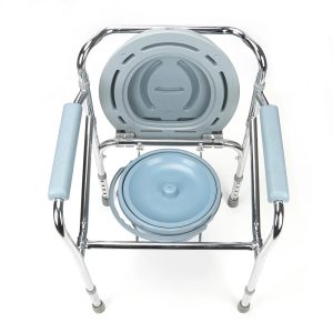 The commode is strong enough with the weight capacity 100kg due to the steel construction. It is with an easy backrest and PU armrest to increase comfort.